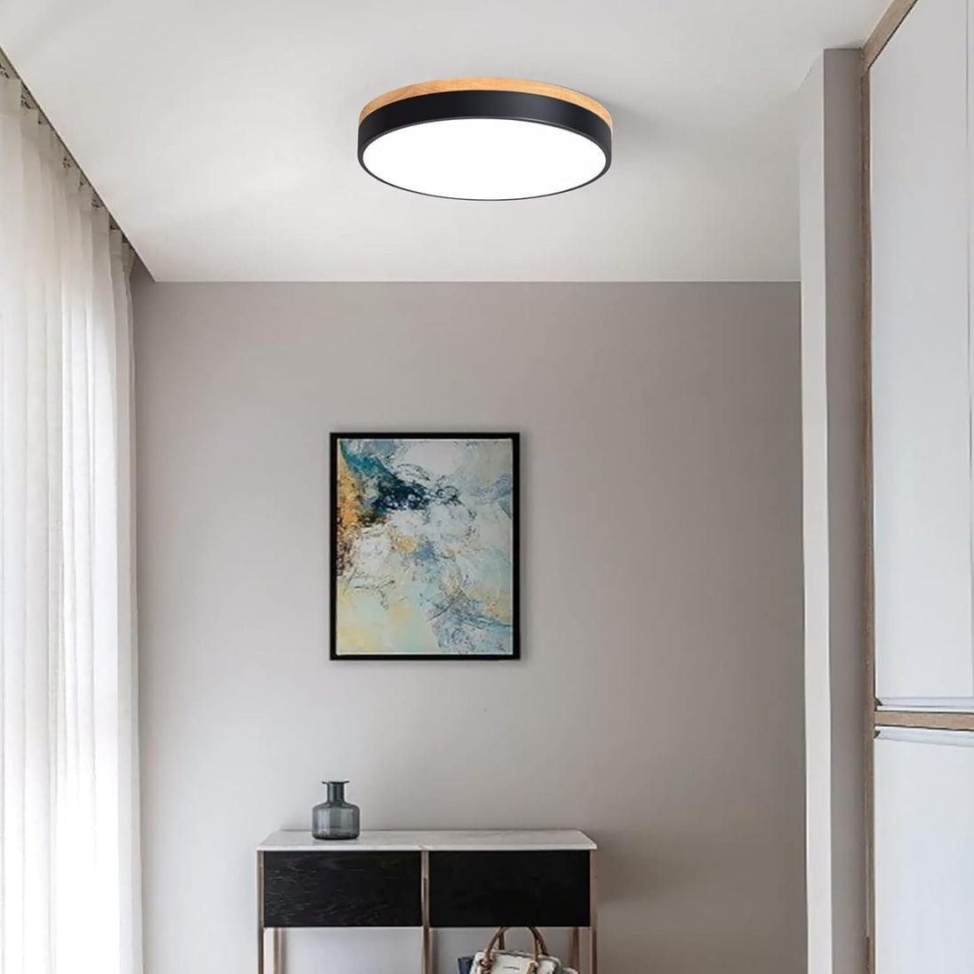 Circular Flush Mount Ceiling Light with Wood Frame