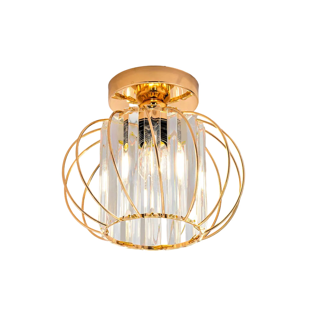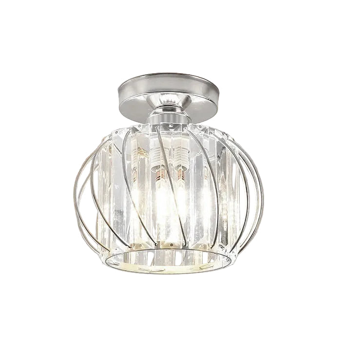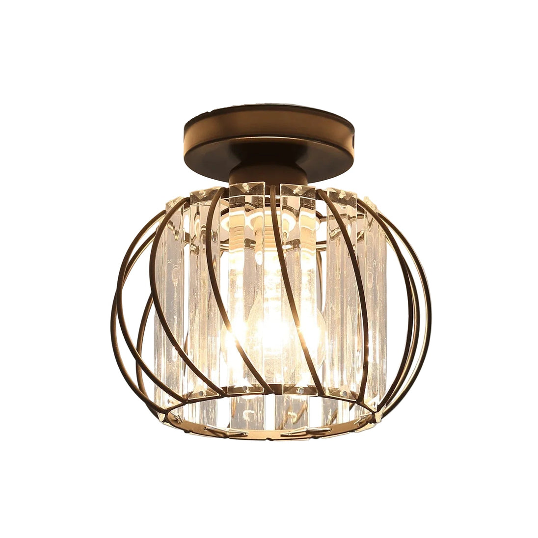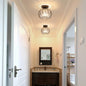 Flush-Mount Ceiling Light with Caged Glass Shade and Metallic Frame