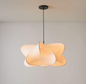 This interior pendant light fixture features an irregular spherical shade designed for overhead installation. The unit is suspended from a ceiling mounting assembly and utilizes a translucent material to provide illumination across interior surfaces. The construction consists of a single-volume frame with a textured fabric finish to facilitate soft light distribution. The fixture is designed for fixed installation on flat ceiling surfaces.