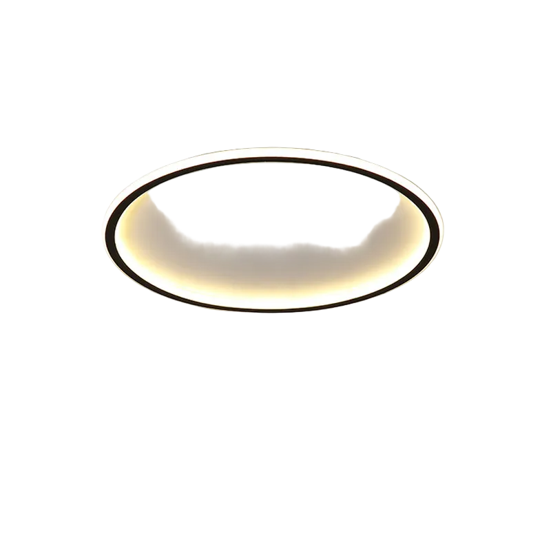 It is mounted flush to the ceiling and distributes light uniformly across the ring shape.