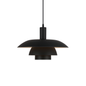 This pendant light features a tiered metal shade with a stepped, symmetrical form. The shade is suspended from the ceiling by a single cable and encloses the light source. The fixture hangs freely below the ceiling and directs light downward.