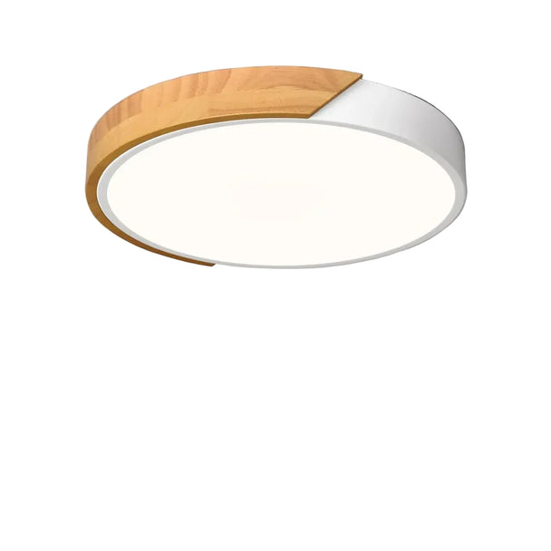 Modern Circular LED Semi Flush Ceiling Light with Wood Base