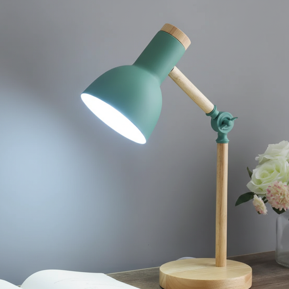 Modern Adjustable Wooden LED Table Lamp with Metal Shade