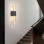 Linear LED Wall Sconce Light This wall-mounted light fixture features a slender rectangular frame constructed from iron with an integrated LED light source. The unit is designed to be mounted flush against flat vertical surfaces, providing both upward and downward illumination through an acrylic diffuser. The construction consists of a central mounting plate and a linear lighting element.