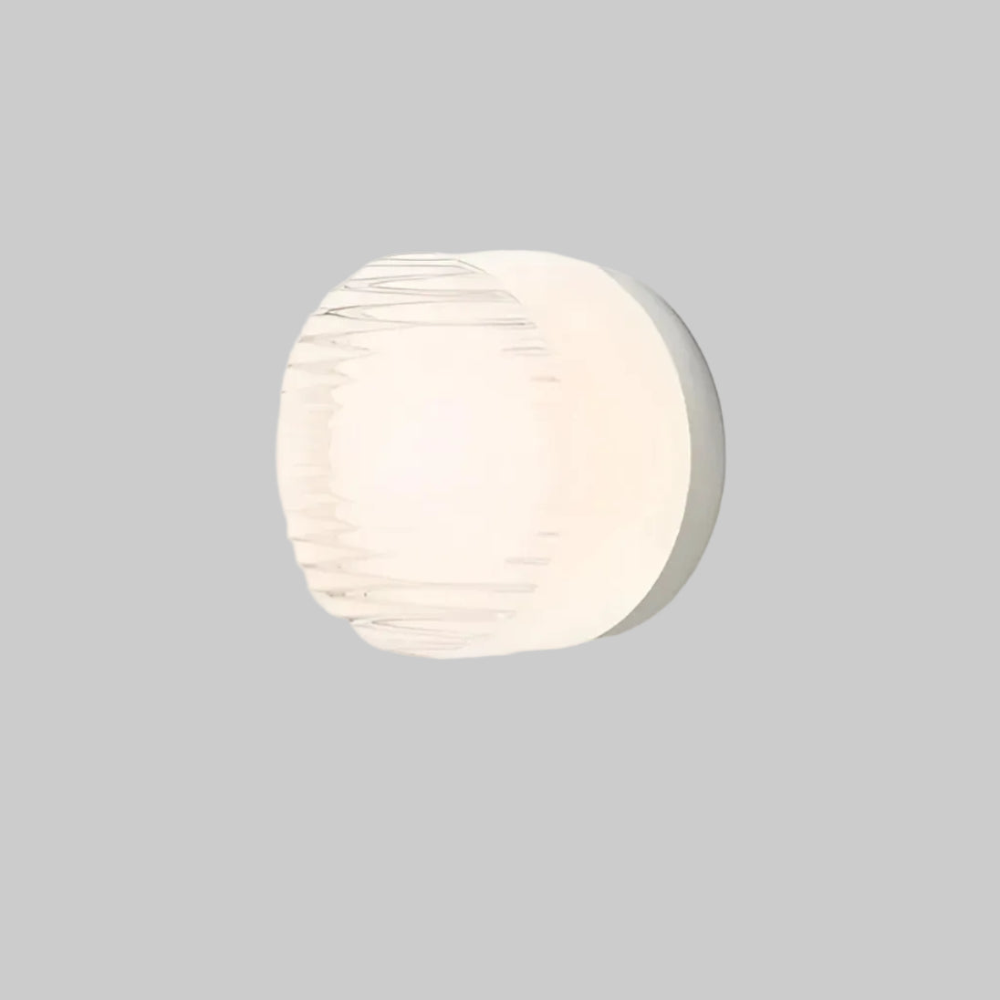 This wall-mounted light fixture features a sculpturally refined, dimpled acrylic lens paired with a durable aluminium body. The unit provides a warm ambient glow and is equipped with integrated LED technology for energy-efficient performance. Its clean profile and textured surface allow it to deliver soft, consistent illumination across interior environments.