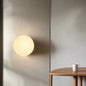 This wall-mounted light fixture features a round lampshade constructed from smooth glass paired with a sturdy metal base. The unit is designed for a fixed, hardwired installation against vertical surfaces to provide adjustable ambient illumination for interior spaces like bedrooms and hallways. The construction includes a G9 base designed for LED light sources, allowing for diffused light distribution through the translucent glass shade.